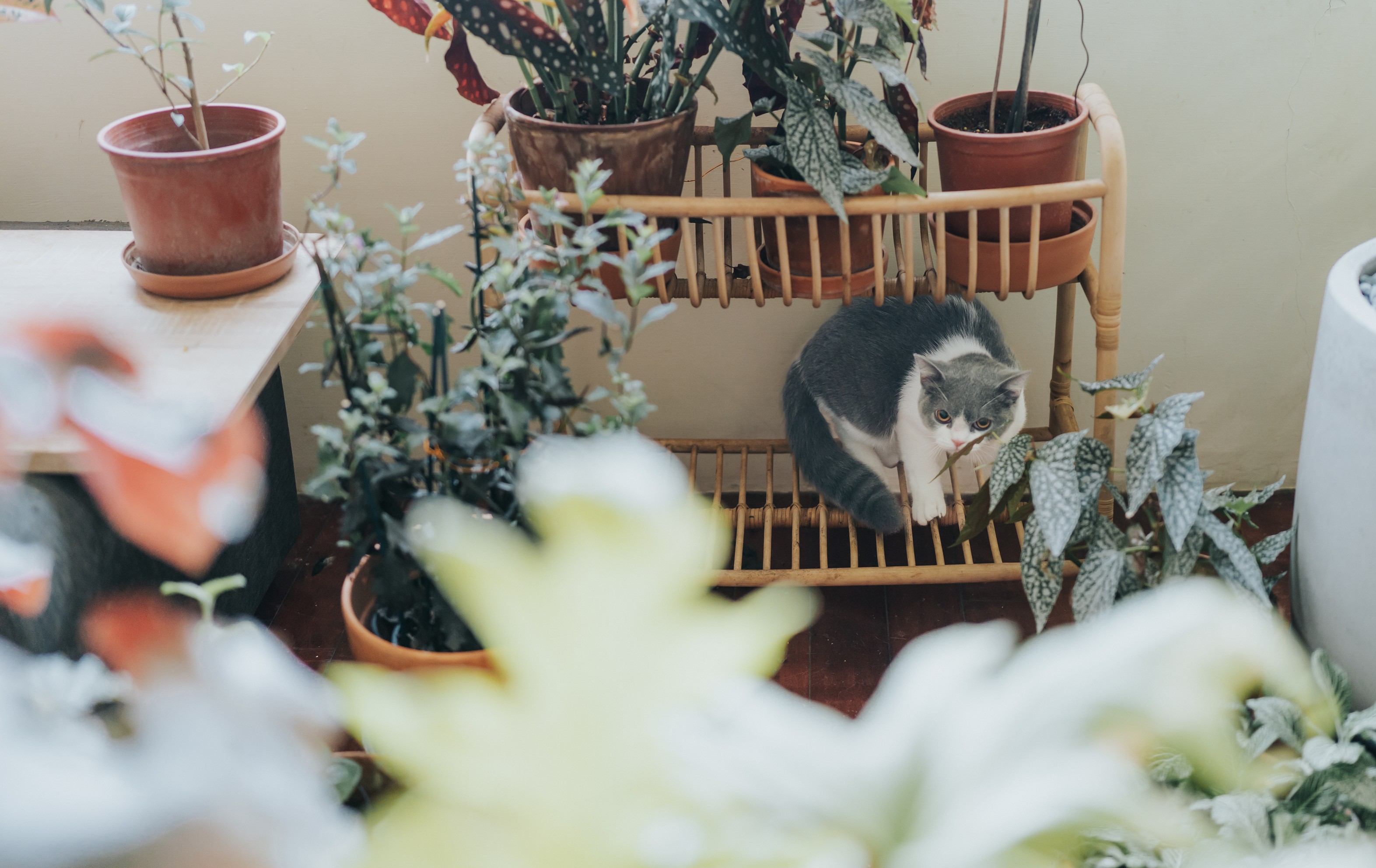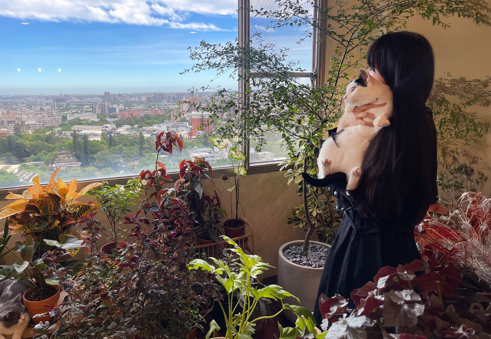 「跟貓咪在一起的療癒時光很多,除了設計卡關時能吸吸貓外,日常也喜歡看他們在用貓爪輕輕拍打植物啊或遠遠望著窗景。但說到最喜歡的還是他們躺在我身上睡覺的時候,」她說。窗前的綠意是貓咪們最愛的空間。這些互動不只是陪伴,更像建構起生活感的共同參與。