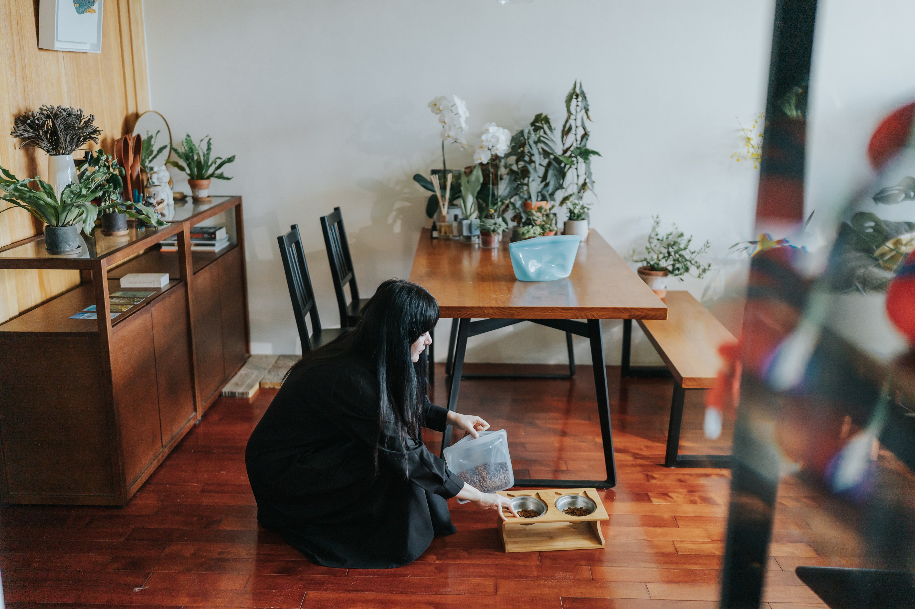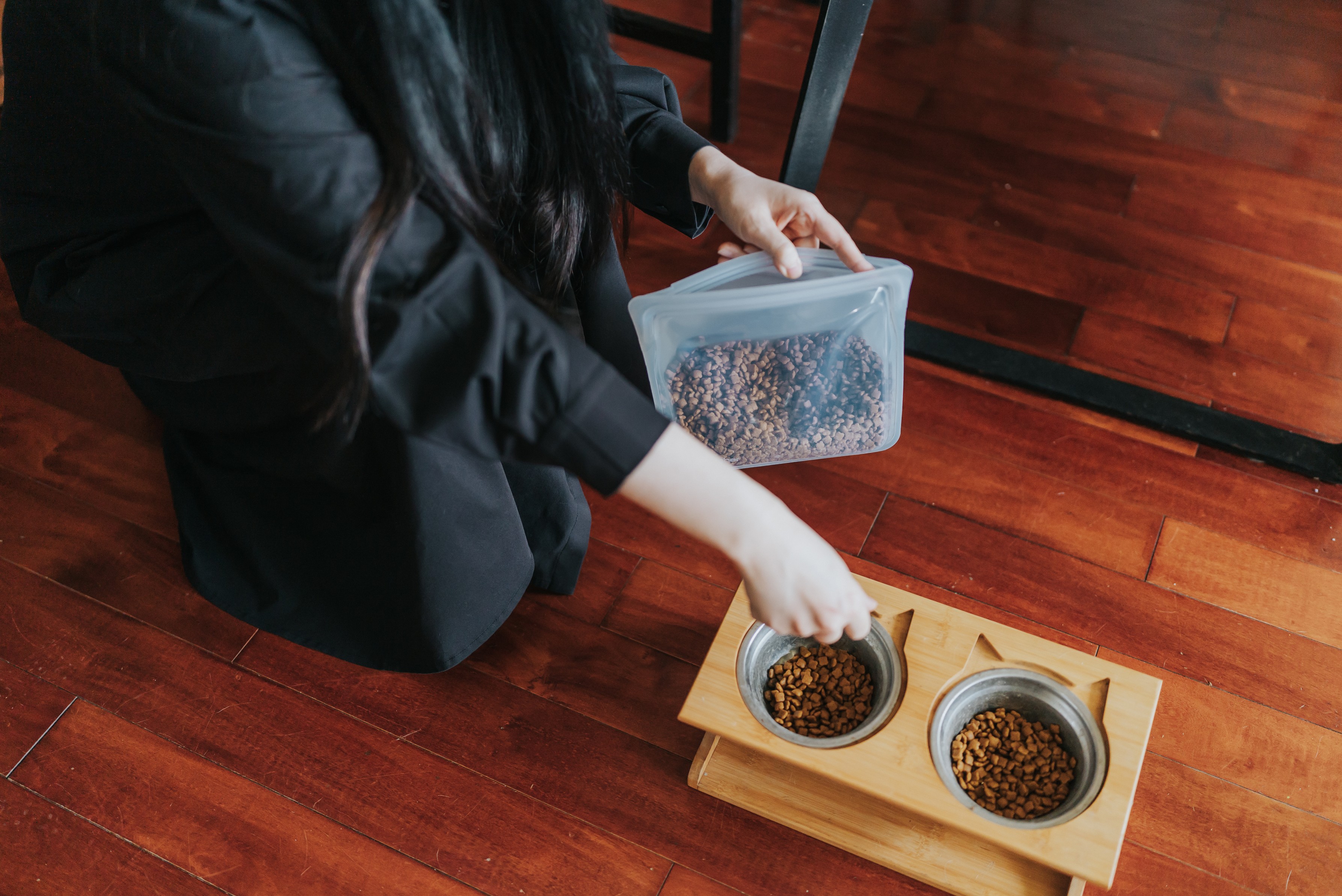 令理家的貓飼料採取吃完就補的方式,Stasher站站及碗型矽膠密封袋大容量剛好能滿足保存飼料的需求。