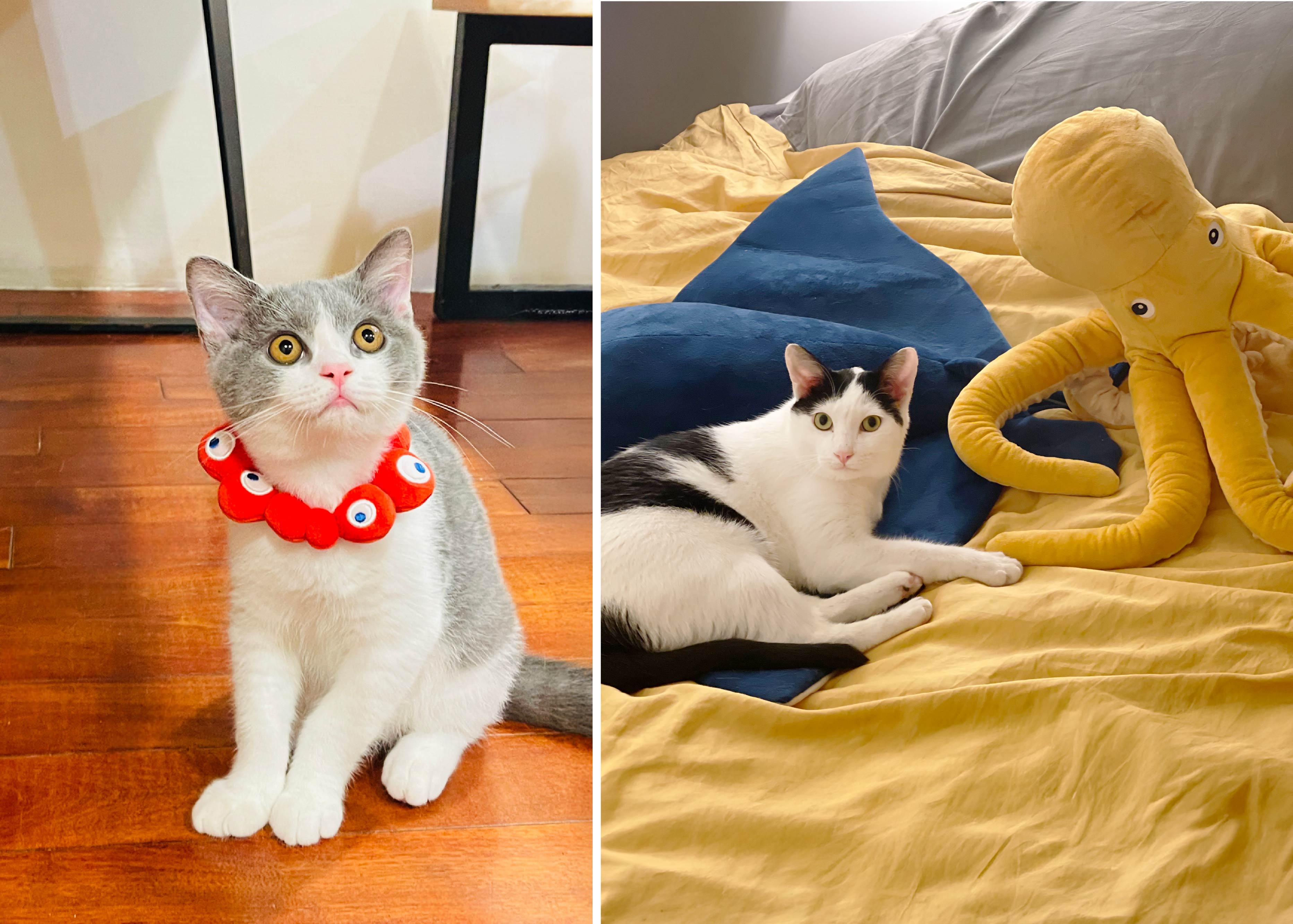 聊到貓咪對於令理來說是怎麼樣的存在,「對我來說我不會是寵物店說的某某爸爸媽媽(笑),貓咪們跟我的關係更像是家人,我們其實都是獨立的,只是這個階段住在一起。相處模式更是像室友或朋友,貓咪的生長週期大約兩年就追上人類,家裡的大貓我已經把他當成同輩來相處。」令理說到姊姊其實是喜歡狗狗的,但她則更喜歡貓咪那份獨立不依附於誰的個性,就連她跟朋友相處之道也是,保持著剛剛好的親密感。