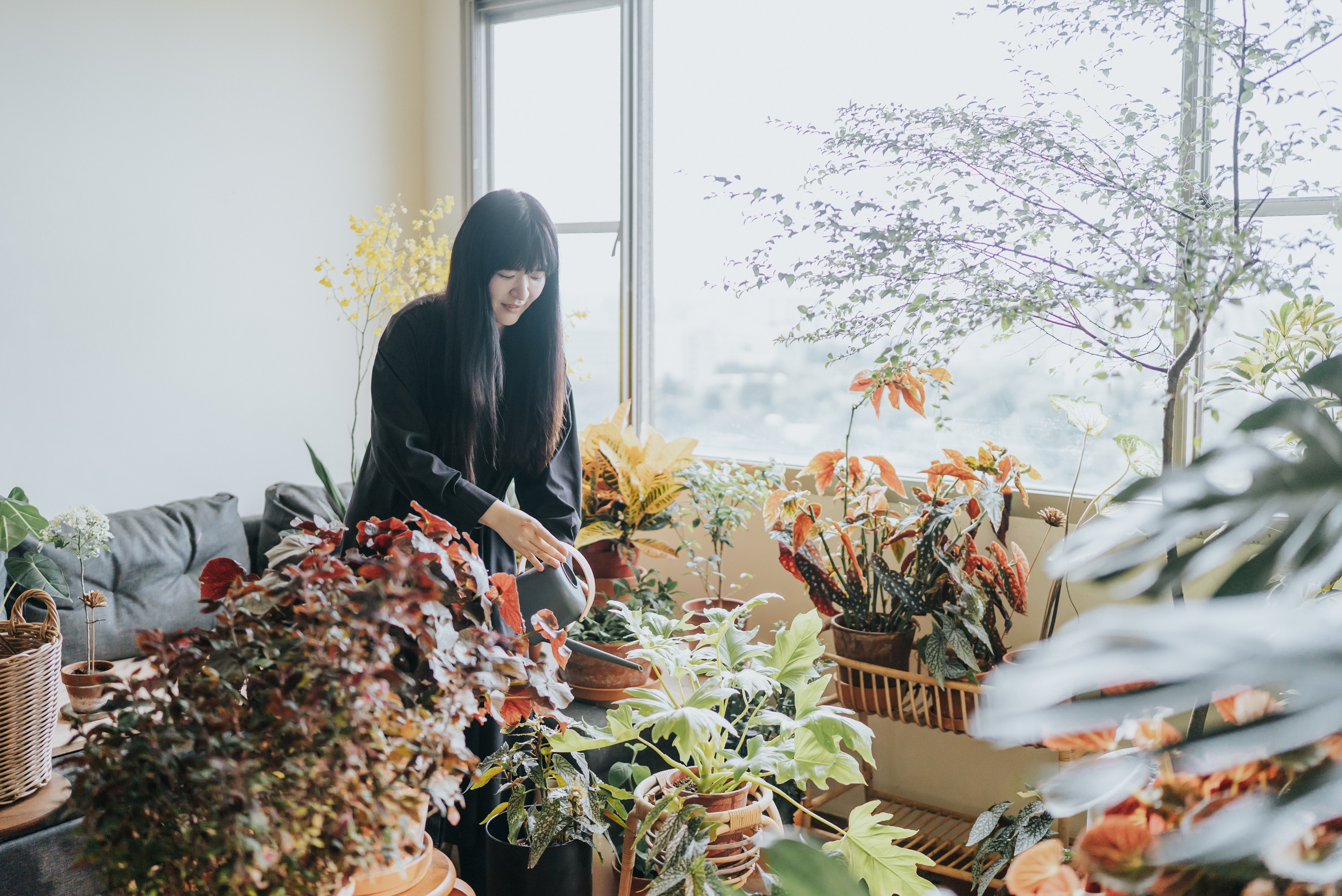 走進設計師曾令理位於新竹的住所,映入眼簾的是客廳裡滿滿的植栽。看似隨意卻自有規律地排列著,與大片採光極佳的窗景相互呼應,窗外高樓林立,窗內卻如森林般靜謐,形成一種「在自然中窺見城市」的獨特視角。