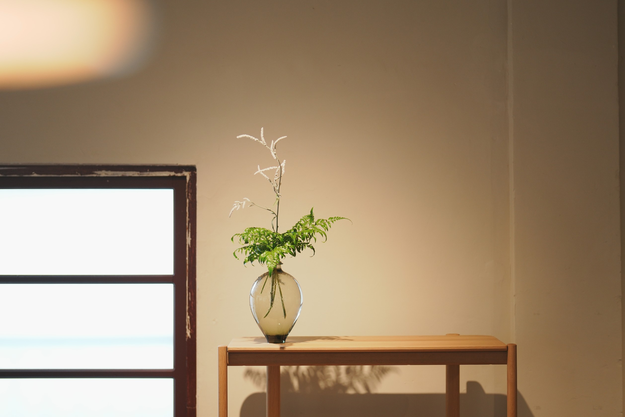 平井老師這次也運用有永浩太所製作的玻璃花器示範,在依然高溫的秋季,清澄雅致的氣息,讓心都沉靜下來了。