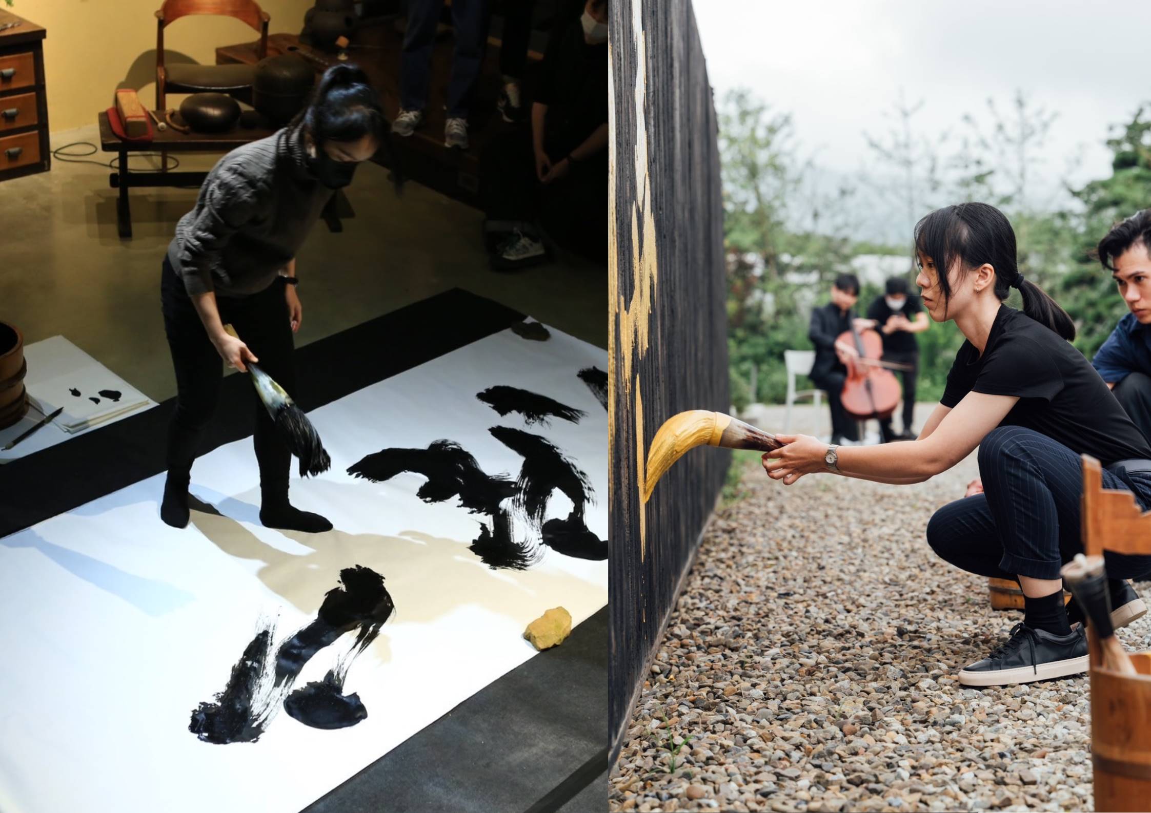 現場逛累了,可坐著欣賞迎春納福的書法作品展示,其為開幕時新銳青年書法家王意淳於現場揮毫展演的創作。王意淳曾獲選執筆總統府牛年春聯題字,父親為台灣書法大師王宏一;適逢甲辰龍年,她以「春山如笑、鬧樂融龍」為題創作,用蒼勁書法筆畫為新的一年帶來祈願力量。