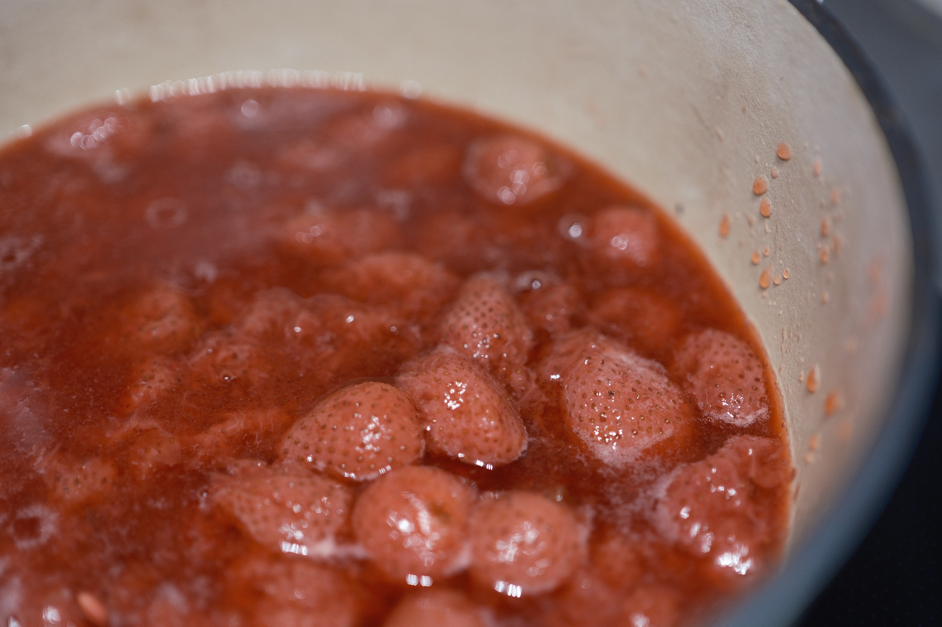剩下的,使用 VERMICULAR 琺瑯鑄鐵鍋,熬煮成草莓糖漿。要煮一公斤的草莓,那必然是白色的鑄鐵鍋吧。