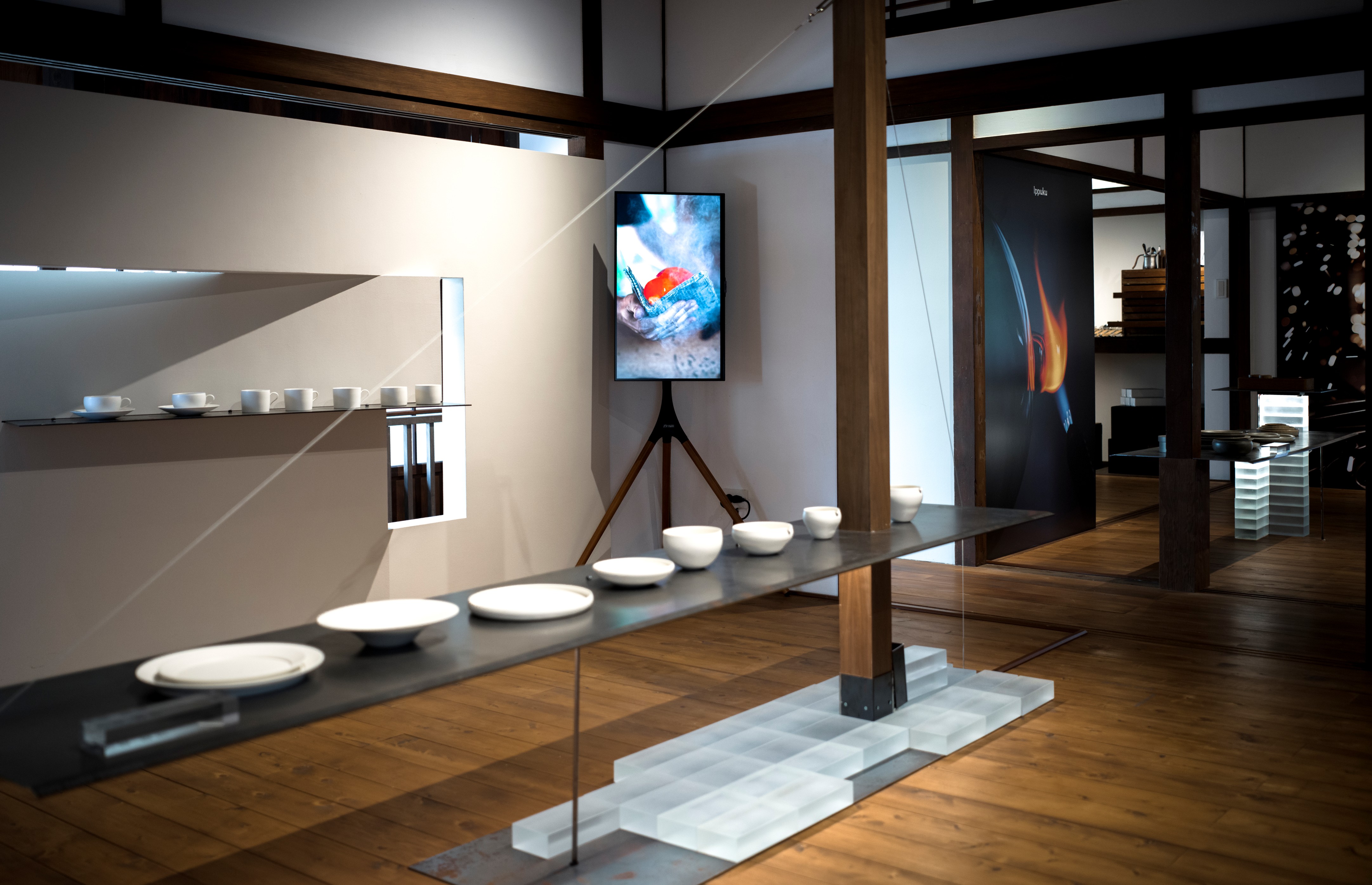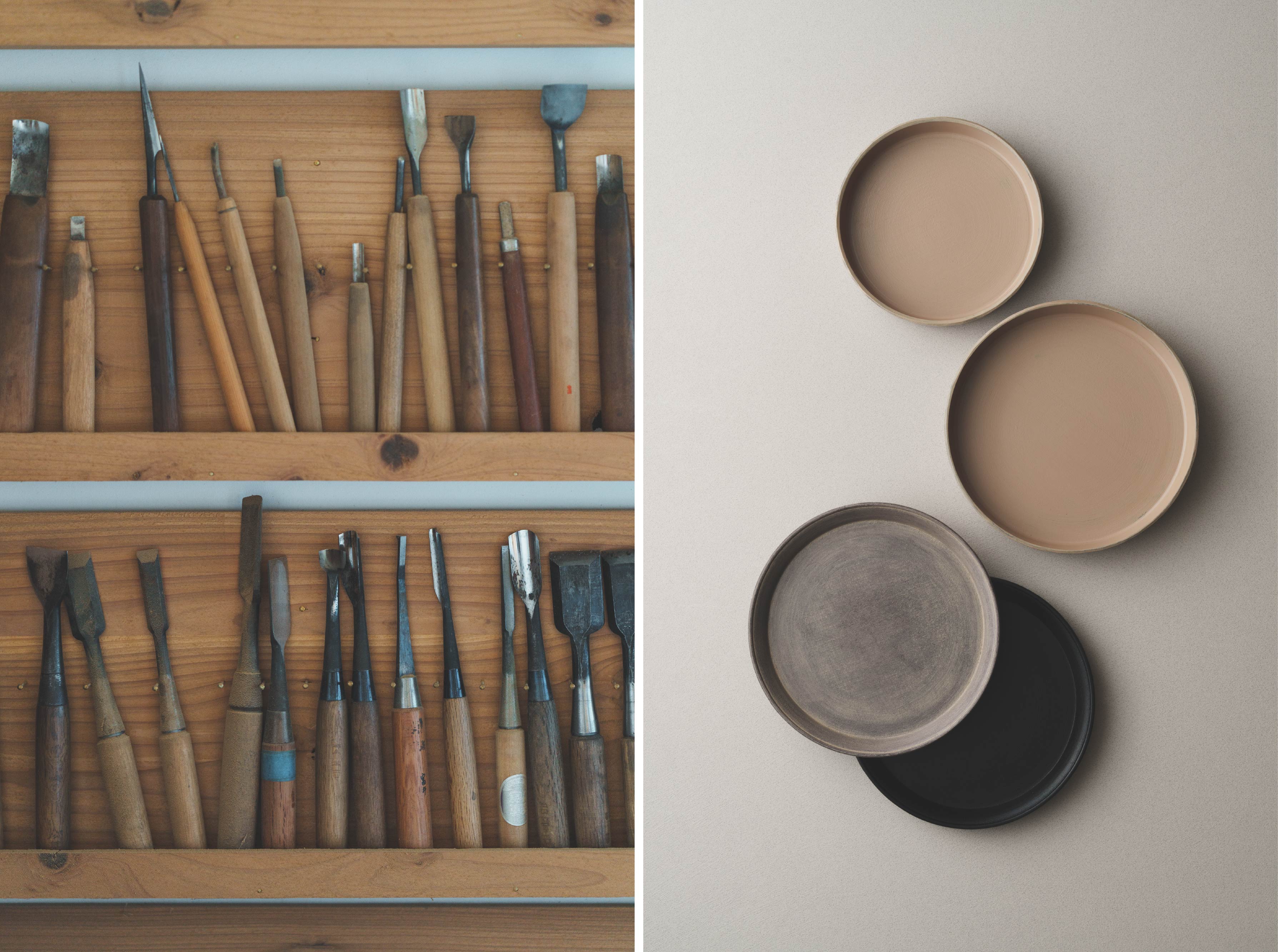 京都的ハタノワタル讓和紙溫潤延展於空間,金澤的竹俣勇壱則以金工勾勒餐具的優雅姿態,富井貴志的木工則塗裝了如砂色的色漆創造出彷如陶瓷的視覺,所有的精彩皆於作家作品中呈現。