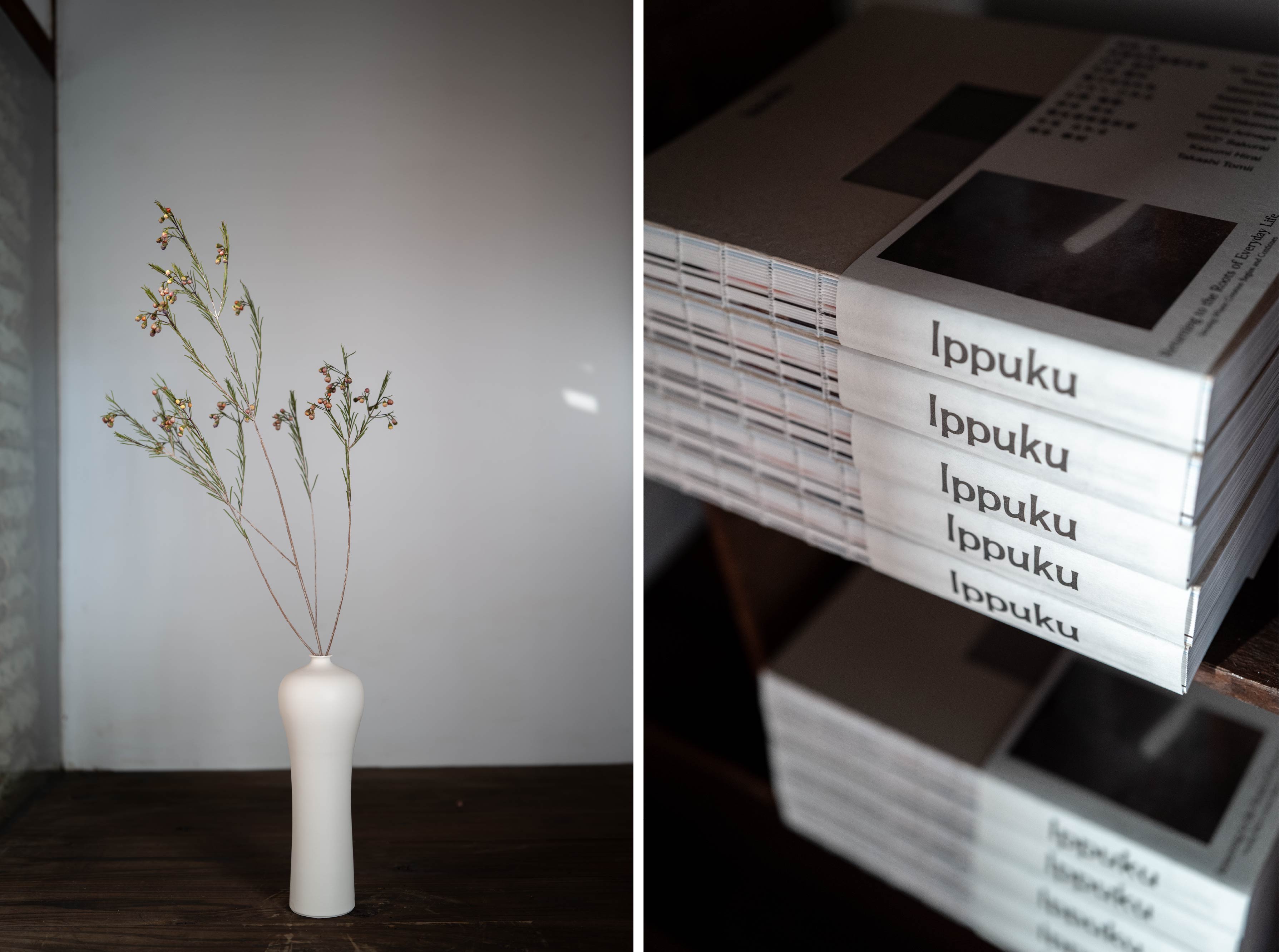 生活中只要有一些小小的轉變,可能是像平井老師所建議的小技巧、或是選一把自己喜歡的花剪剪花、慎重的挑一只自己喜歡的杯子喝著咖啡,都能創造片刻中的喘息空間,而在這一服(Ippuku)中,我們好好的恢復自己,再迎接更新的挑戰與生活。這次一起來參展的還有櫻井焙茶研究所的各種日本茶。策展團隊也將過去一年踏查拜訪11位工藝家的訪談及畫面集結成書,線裝裝幀及留白的排版,在閱讀中也能感受到Ippuku的片刻閒適。