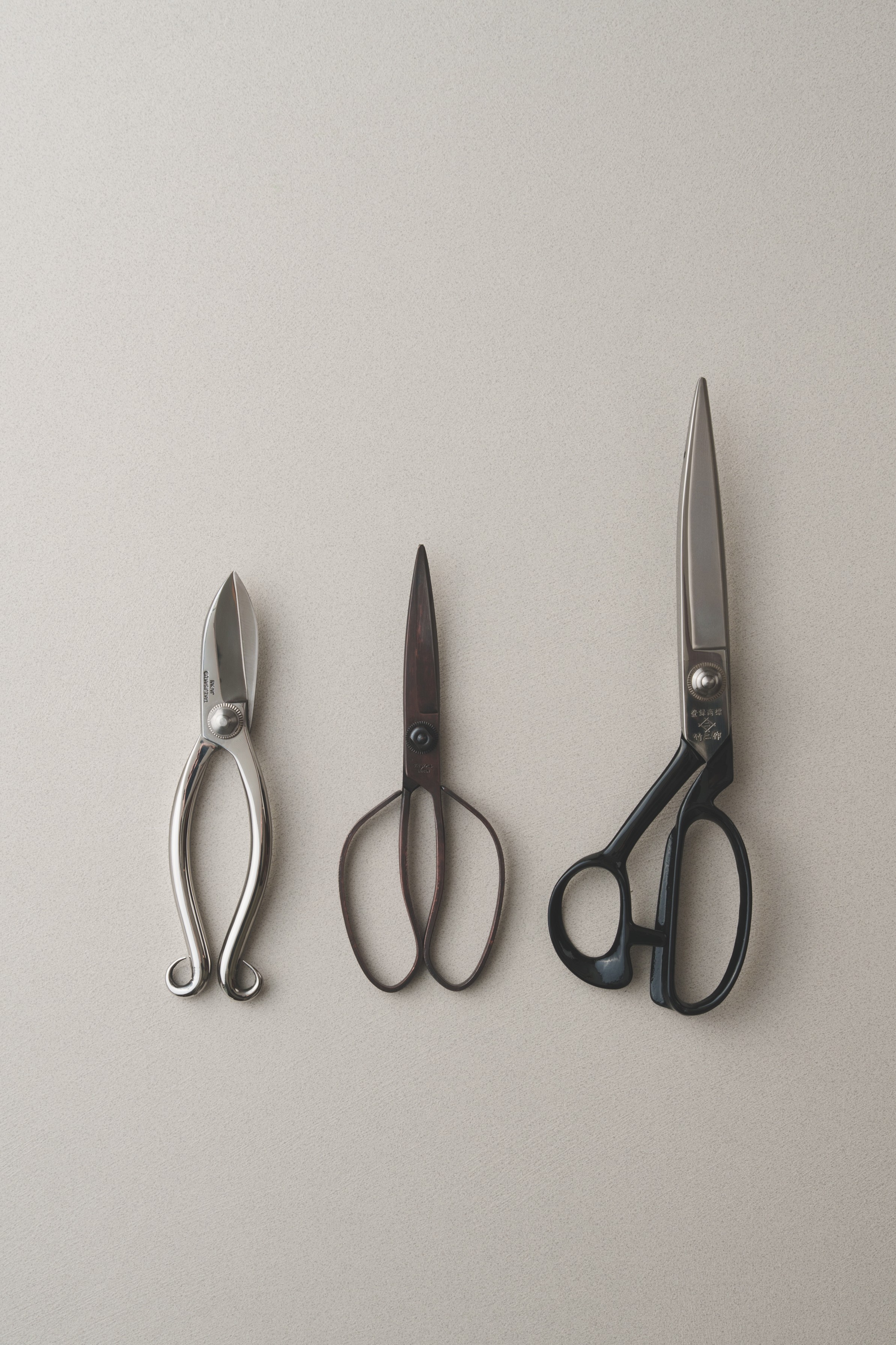 而來自兵庫的多鹿治夫鋏製作所,一直以來運用「白心可緞鑄鐵」的工藝,打造出各種不同的生活用剪,例如布剪、廚房剪刀、花剪以及日本池坊流花藝專用的握剪,這次也一起來台參展的花藝家平井かずみ就特別提到,現在日本願意以傳統工藝製作剪刀的工坊已越來越少,因此她很珍惜像多鹿治夫鋏製作所這樣的存在。
