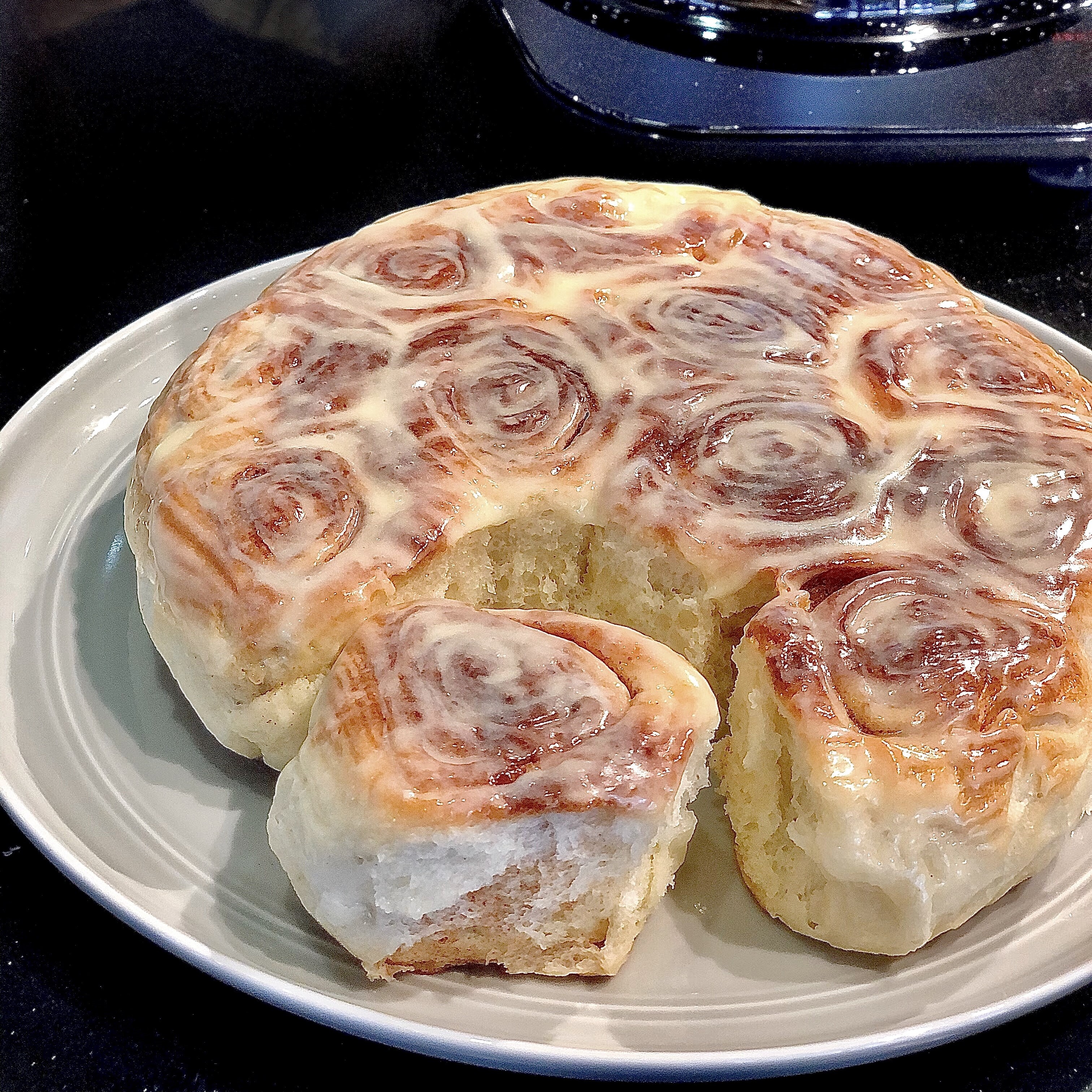 連用烘培紙一併取出,將半熟的肉桂捲翻面,放回鍋中。再次蓋上鍋蓋,用【弱火】加熱10分鐘,關火。