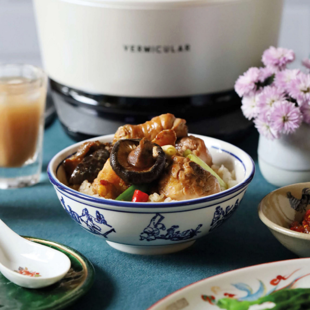 炒好雞肉的鍋子不必清洗,直接放入白米接續炊煮,順便吸收雞汁精華。