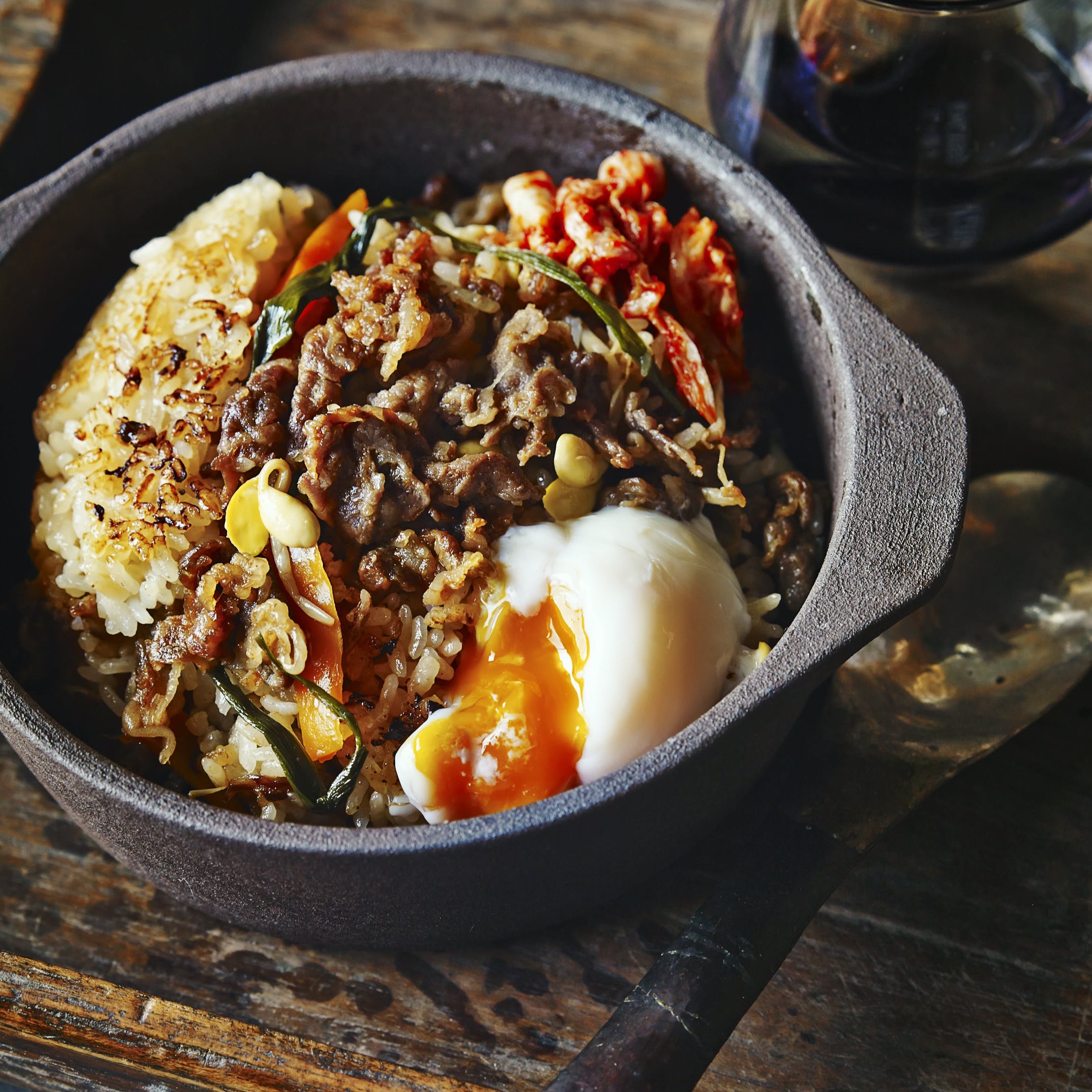 用 IH 琺瑯鑄鐵電子鍋製作的韓式拌飯,有著與石鍋拌飯一樣的正宗風味。酥脆噴香的鍋巴亦是一道令人垂涎的美食。