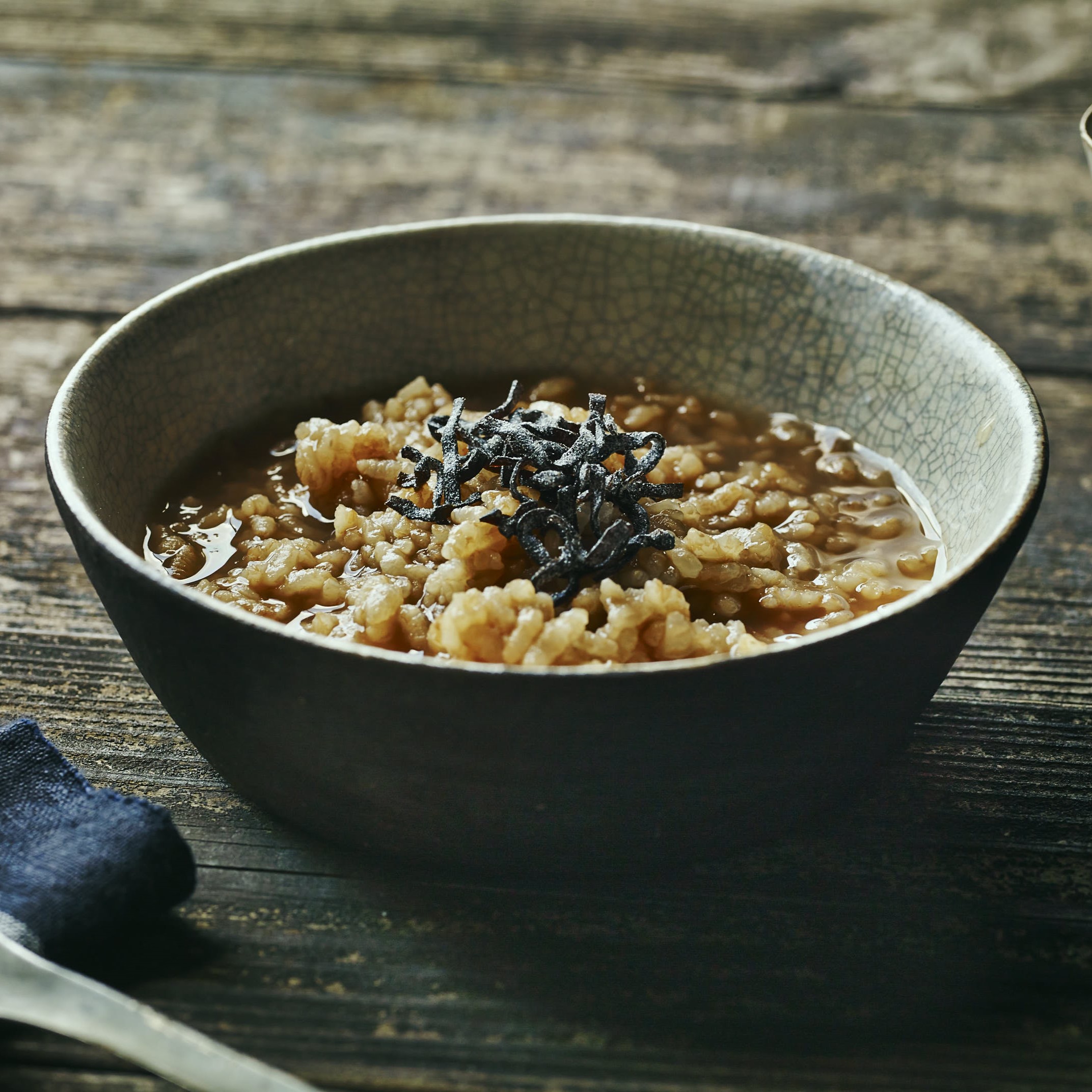 讓味蕾同時感受白米的溫和甘甜與焙茶的濃郁香氣。作為配料的鹽海帶是美味的關鍵。