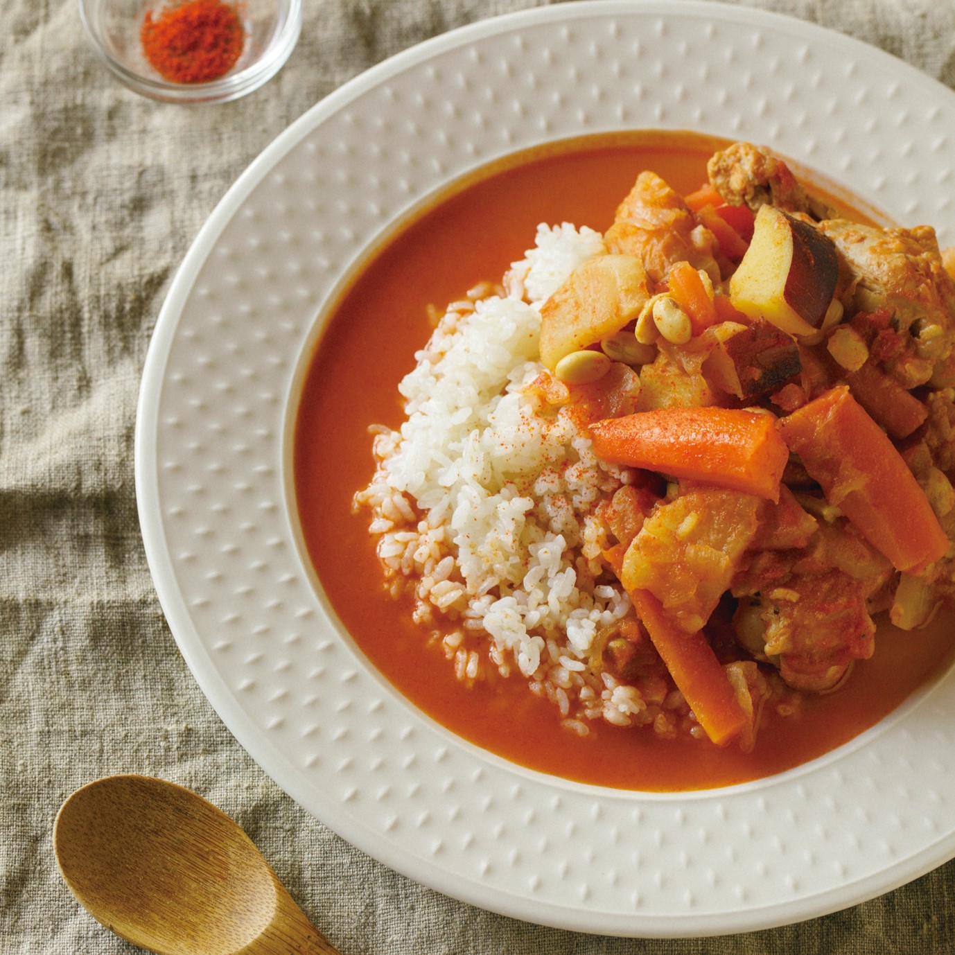 將大量地當季蔬菜,鋪在稍微燒烤過的肉上,攪拌燉煮成的湯品。接著灑上令人胃口大開的辛香料,讓身體暖乎乎的!