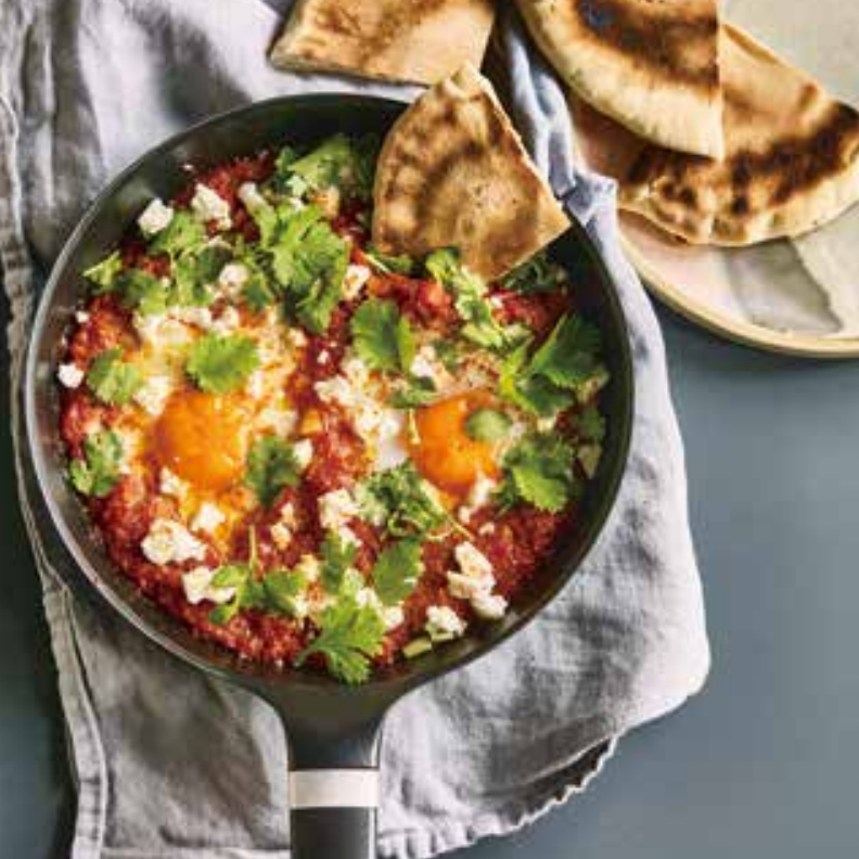 香辣的番茄醬汁與溫和的雞蛋絕配。將菲達起司換成茅屋起司也很好吃。