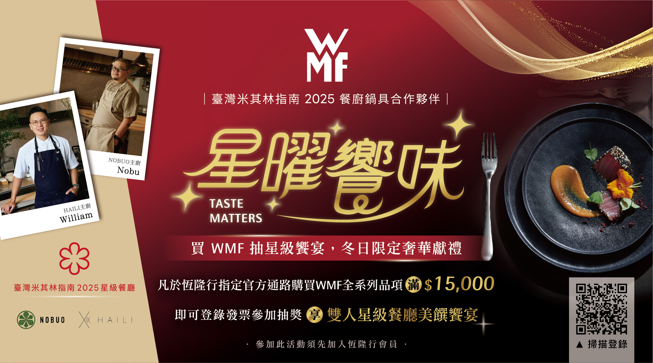 指定通路購買 WMF 全品項商品,就有機會至「台北 Nobuo」或「高雄 Haili」享用米其林星級體驗